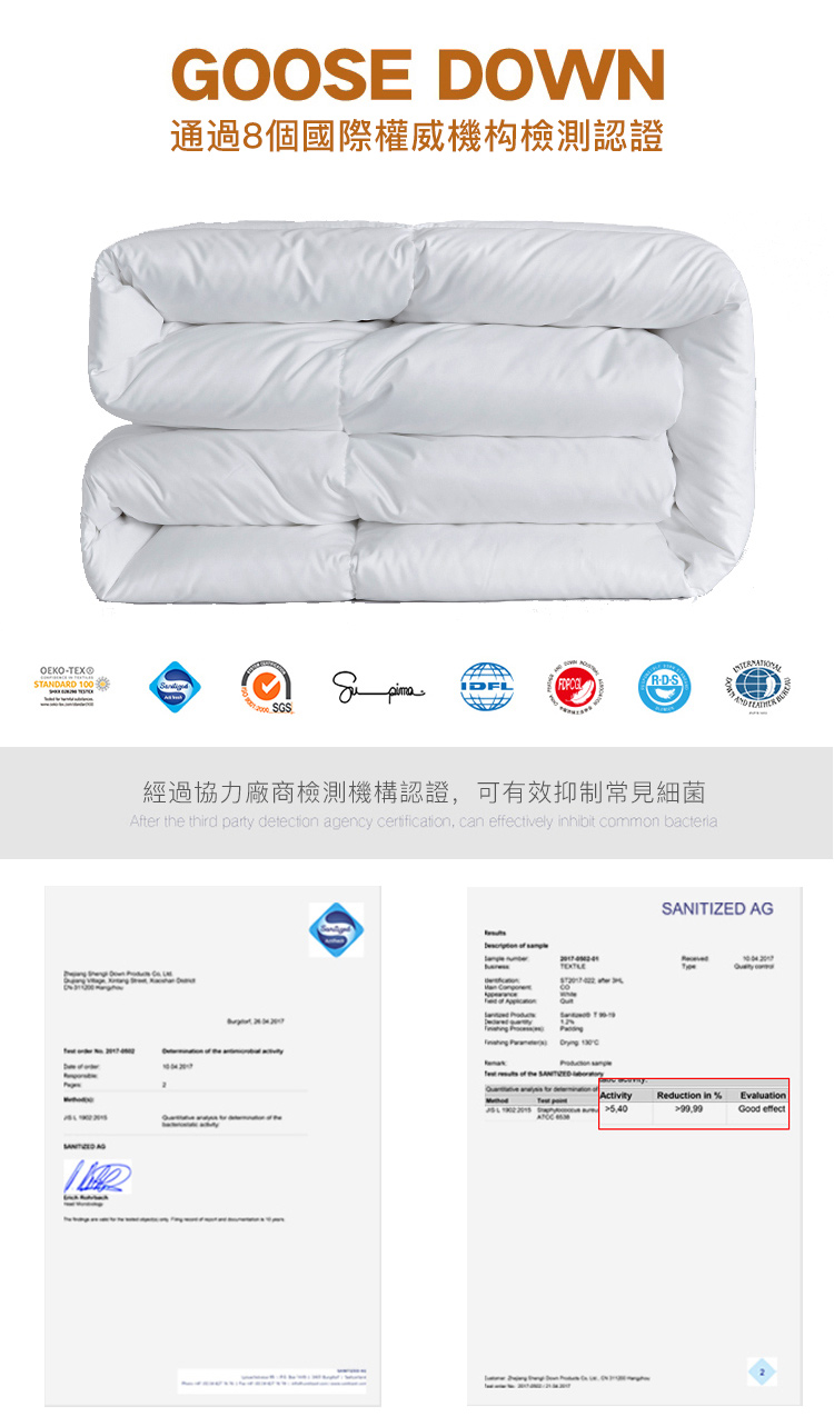 上品寢具為很多知名大飯店指定選擇羽絨被~